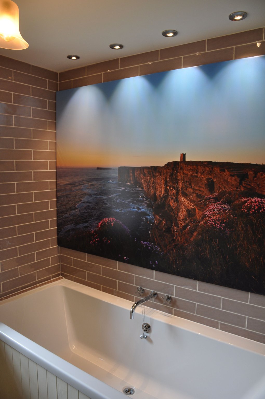 The en-suite bathroom has underfloor heating, a large double ended bath tub and rainfall shower,pebble wall tiling, magnifying mirror and mist free light up wall mirror along with complementary toiletries.